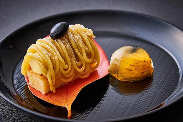 デザート 加賀棒ほうじ茶のビスキーととみつ金時のモンブラン