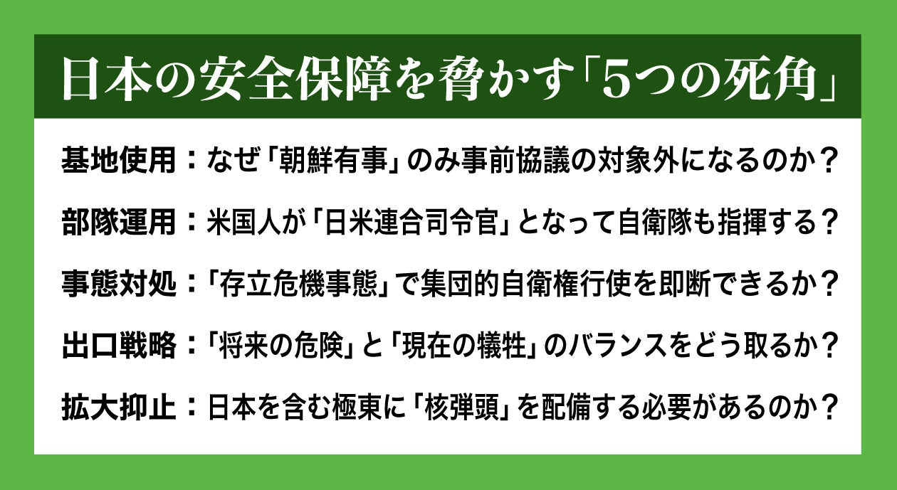 もう「日本だけの都合と願望」は通用しない。基地使用、事態対処から拡大抑止まで、意外な盲点から安全保障の課題を突く。