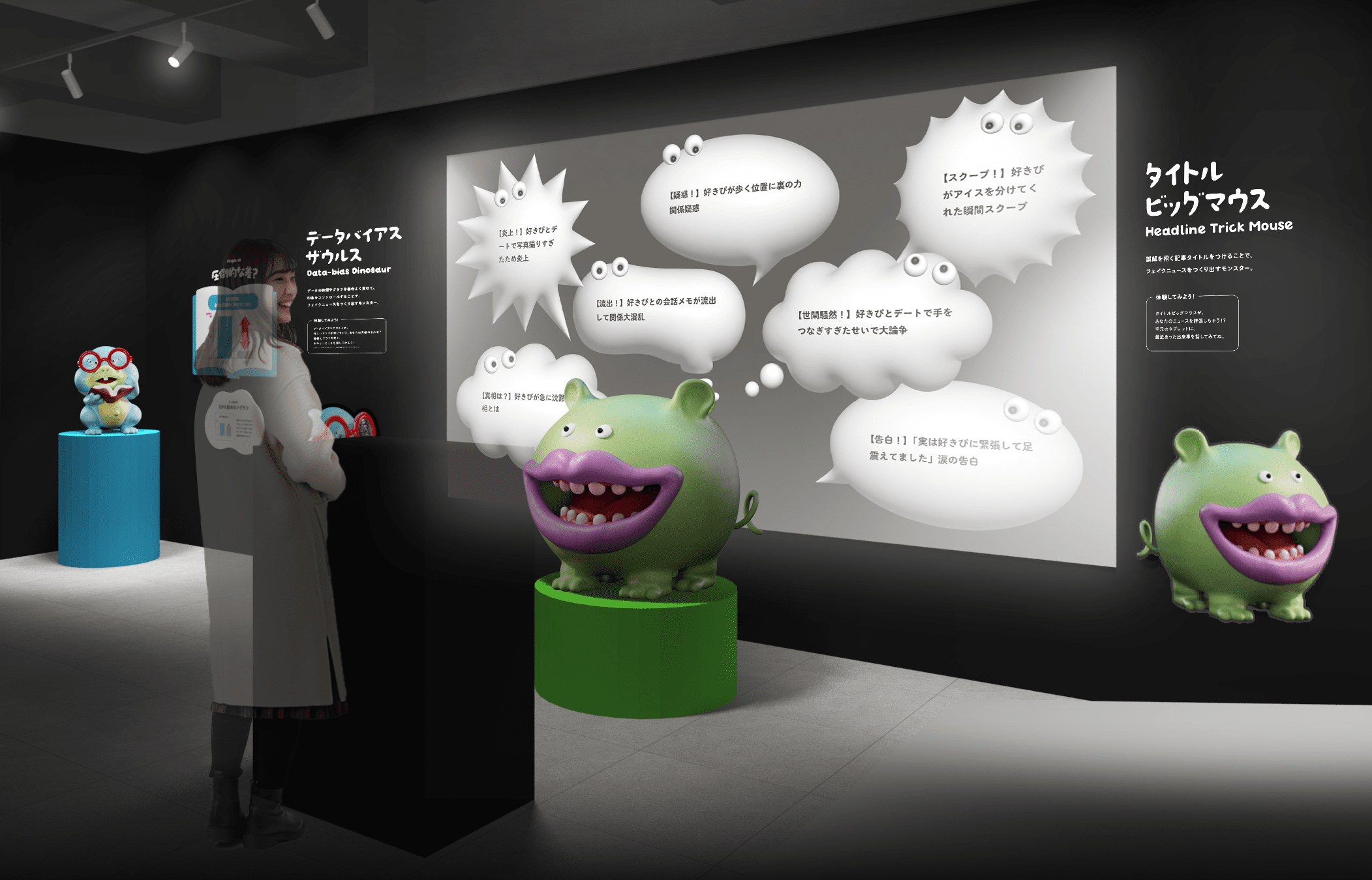 ※3:「FAKE NEWS MONSTERS展」に登場するモンスターは全10種あり、うち4種が体験展示として会場内で展開されています。