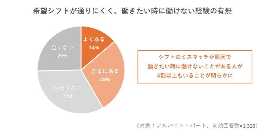 一方アルバイト・パートの4割以上が、働きたい時にシフトに入れなかった経験をしている
