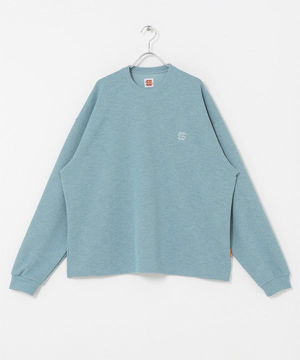 身幅を大きくとり、着丈のバランスを短めに設定したボックスシルエットのSEE SEEベーシック LS TEE。素材はポリエステルのスパン糸を使用することで綿の様な肌触りを持つ天竺素材を使用。ウォッシャブル性、吸水速乾性を兼ね備えたイージーケア素材です。