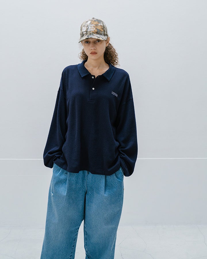 ビッグシルエットのニットPOLO。素材は特殊な紡績技術で、空気を多く含ませた糸を天竺に編み立てたウール混素材を使用。ふんわりと軽く、肌触りの良い柔らかさを持った素材です。