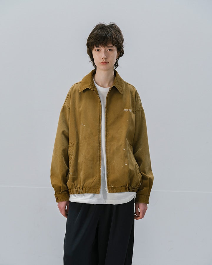 ベーシックSWINGTOPをオーバーサイズにアレンジしたSEE SEEオリジナルシルエットのコットンSWINGTOP。素材は微起毛を施した高密度のチノクロス生地にエイジング加工を加えております。微起毛による独特なタッチ、風合いが特徴の素材です。