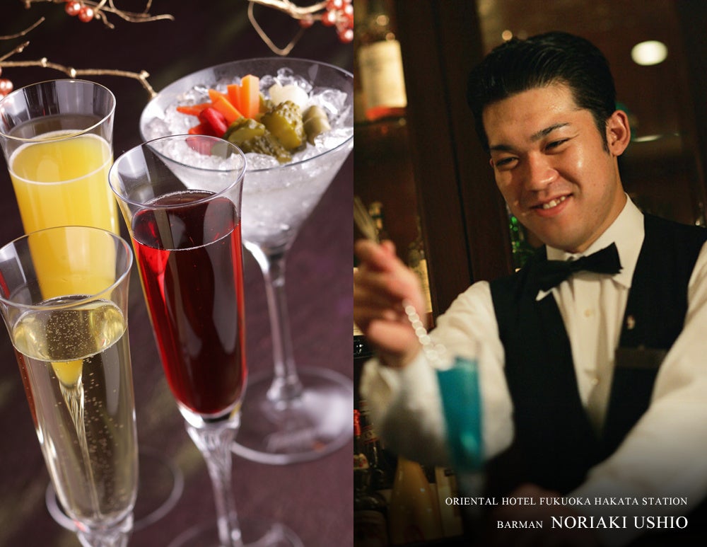 ホテルバーテンダーとして約20年従事し、カクテルコンペティション九州大会1位を経て、九州代表として全国大会で入賞するなど、様々な大会において入賞経験のある「潮 紀彰(うしお のりあき)」による、初のカクテルパーティーとなります。今回はメインとなるオリジナルカクテルをコールドカクテルとホットカクテルで考案、シェフがじっくりと作り上げた温かな煮込み料理やおしゃれなピンチョスにベストマッチする特別な一杯をご準備いたします。またお客様のお好みに合わせたカクテルも即興でお創りいたします。洗練された技術から生み出される至極の一杯で、大切な人と優雅なお時間をお過ごしください。