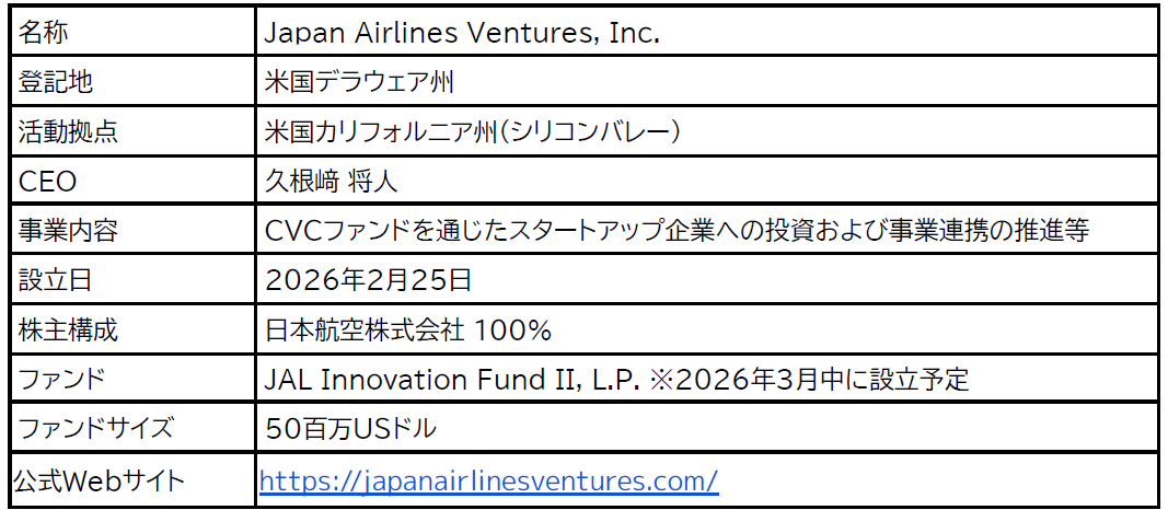 <Japan Airlines Ventures, Inc. 会社概要>