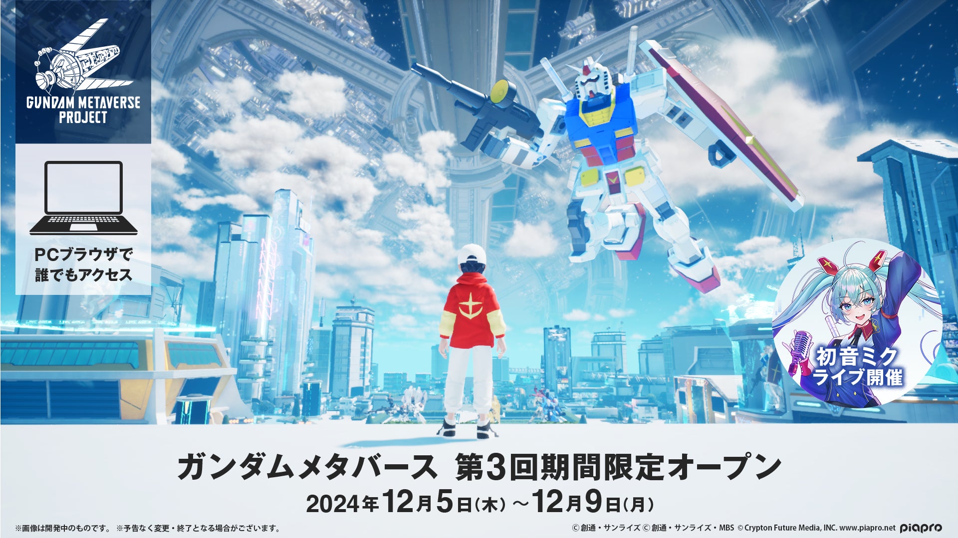 株式会社バンダイナムコエンターテインメントは、2024年12月5日(木)より「ガンダムメタバース 第3回期間限定オープン」を開催することをお知らせいたします。