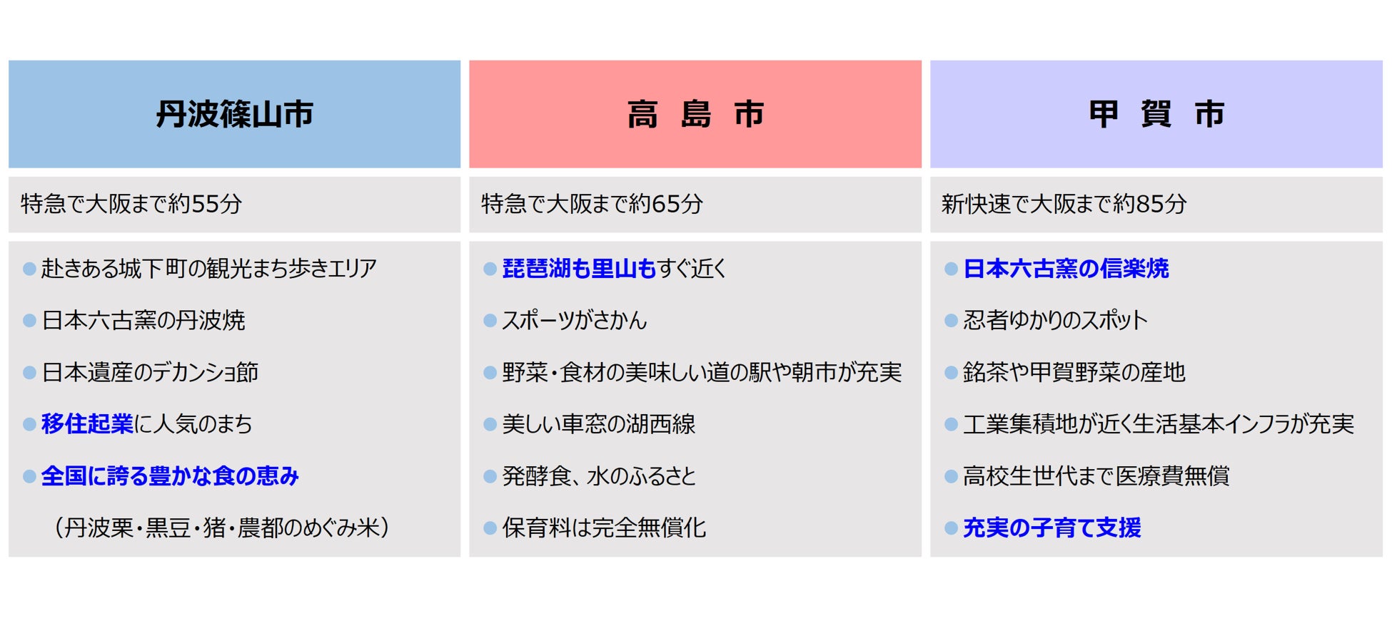 いずれの地域も、京阪神都市部オフィスエリアから鉄道で概ね90分以内の、都市部へもアクセスしやすく、ローカルの風情も満喫できるエリアにて、おためし住宅をご用意しています。