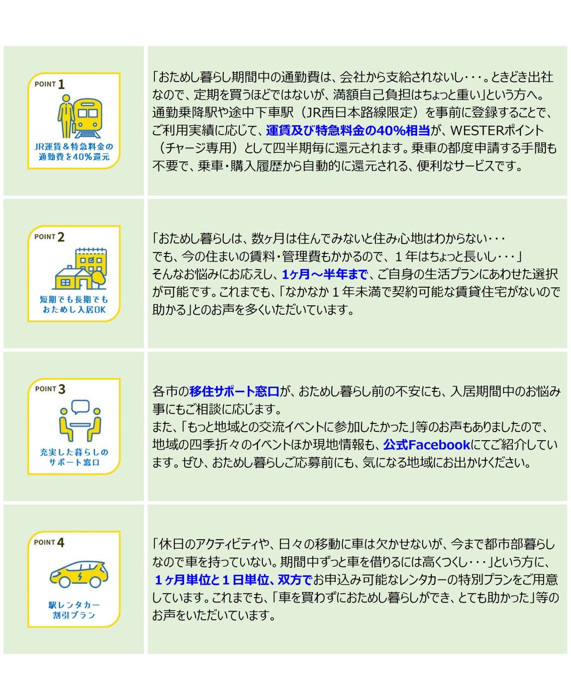 各サービス詳細は、公式ホームページ https://www.westjr.co.jp/life/living/otameshi_life/