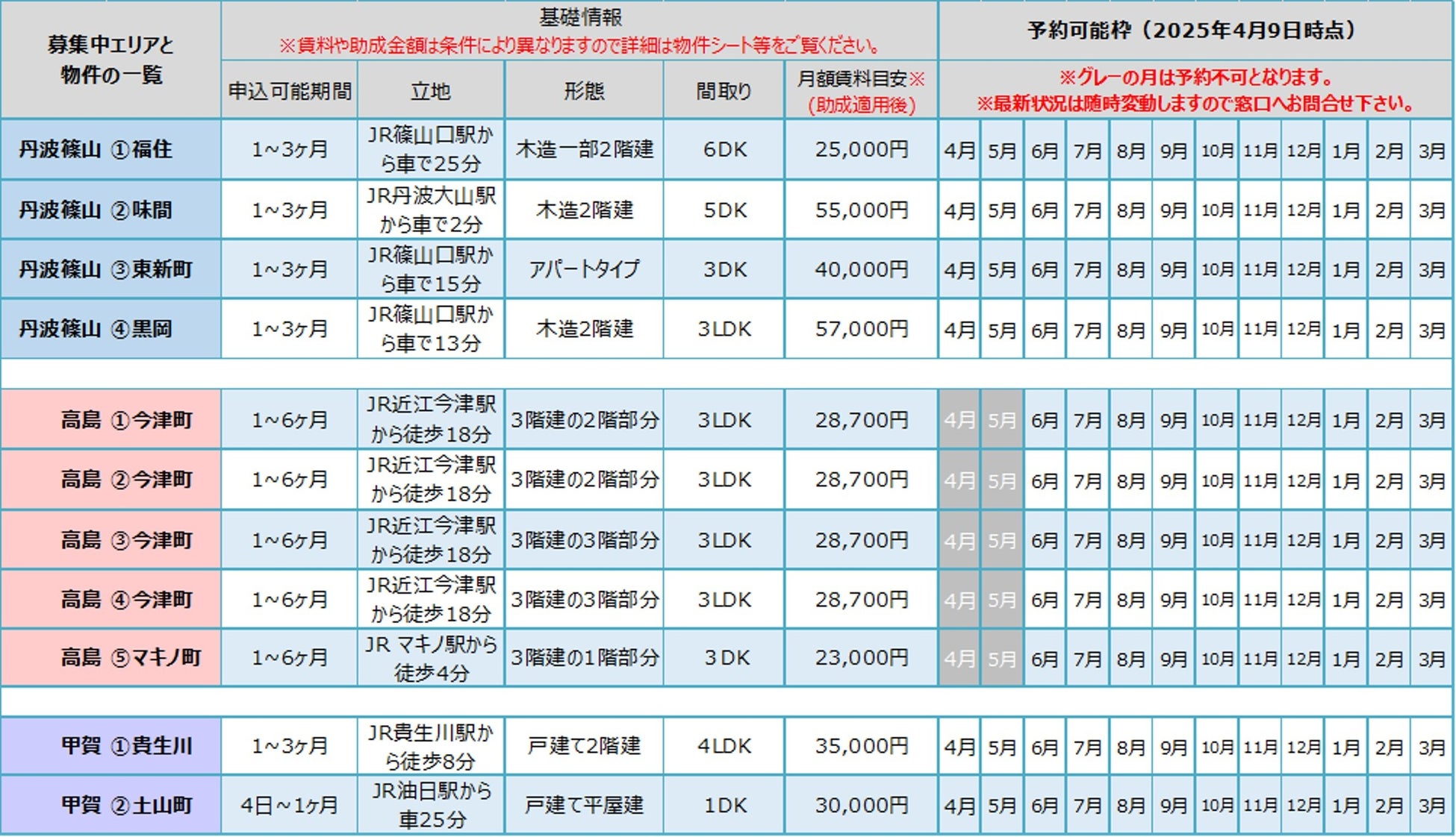 ○ ご希望の物件・期間に空きがあれば、随時ご案内します。
