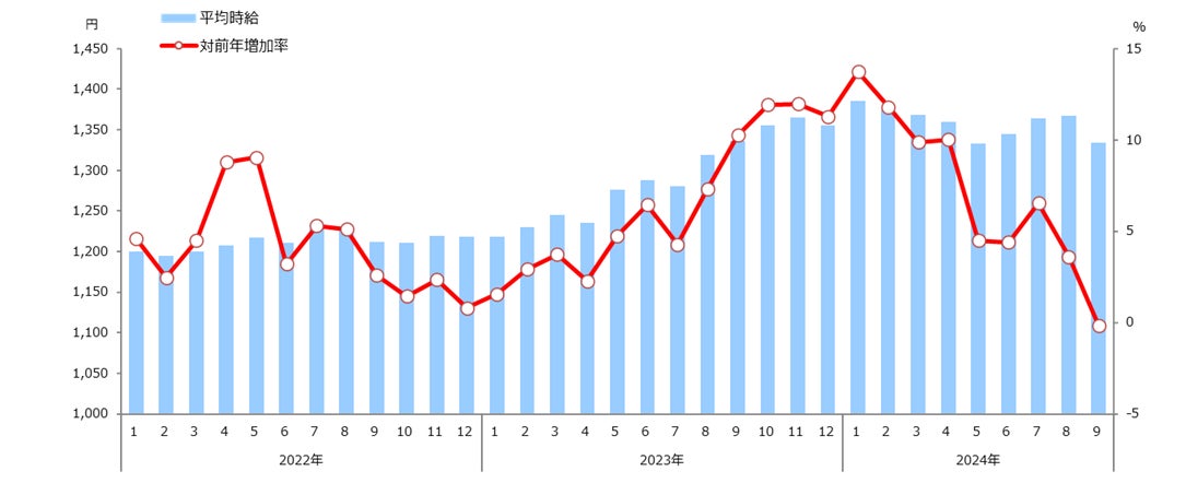 2024年9月度 アルバイト平均時給調査 全国の平均時給は1,334円