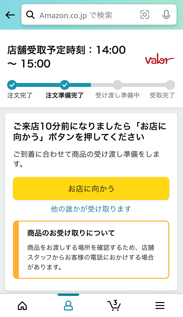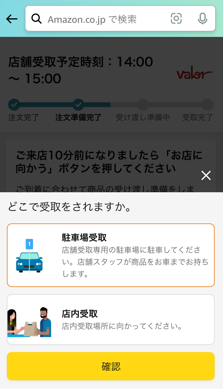 ご到着後、駐車した場所をAmazonショッピングアプリからご連絡いただくと、お客様のお車まで店舗スタッフが商品をお持ちします。