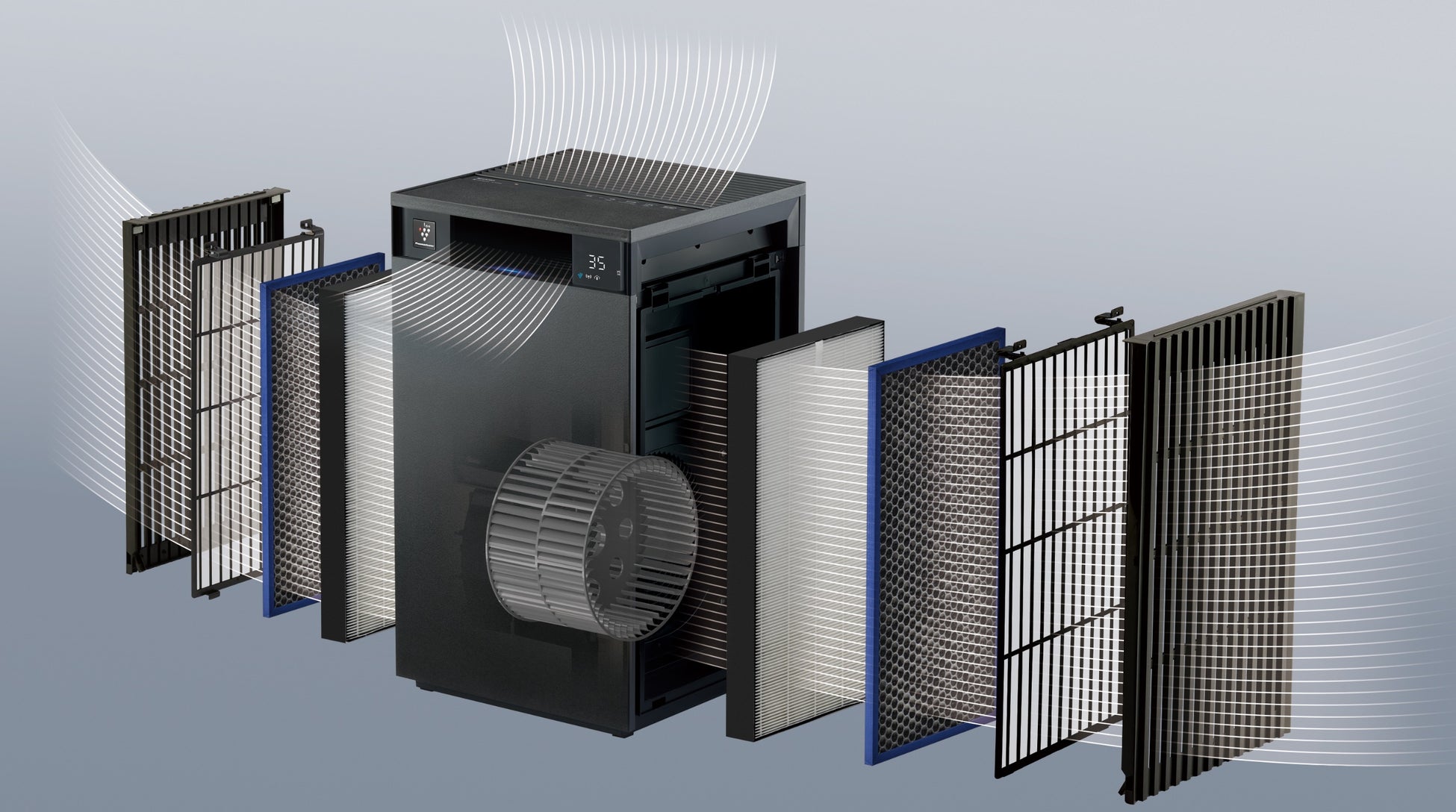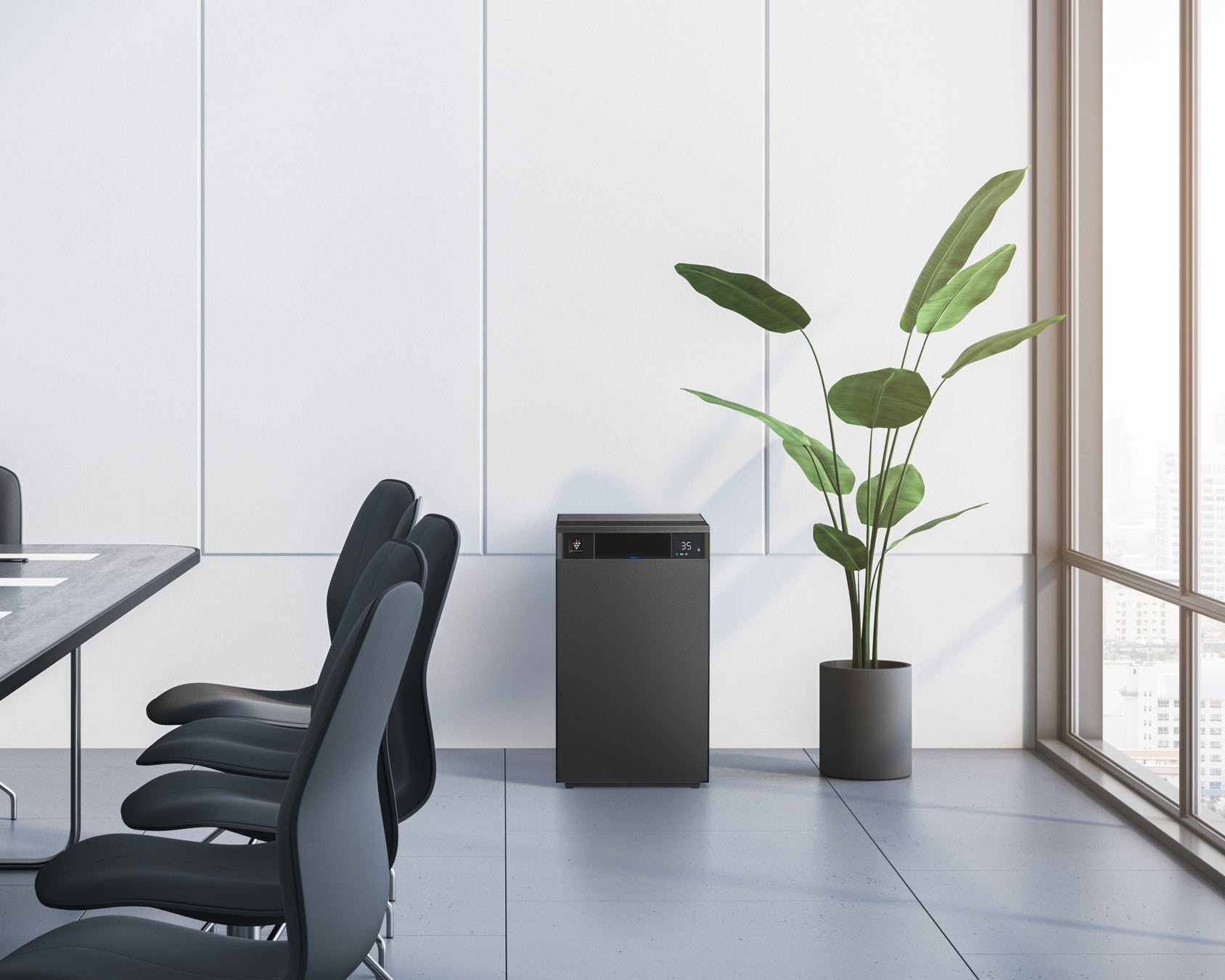 近年、従業員や来訪者への快適な空気環境の提供を目的に、オフィスや公共施設などにおいても空気清浄機の導入が進んでいます。こうした空間では大空間に対応した空気清浄性能が求められる一方、デスクや什器などの配置により空気清浄機を設置するスペースの確保や電源コンセント位置の制約が課題となっています。
