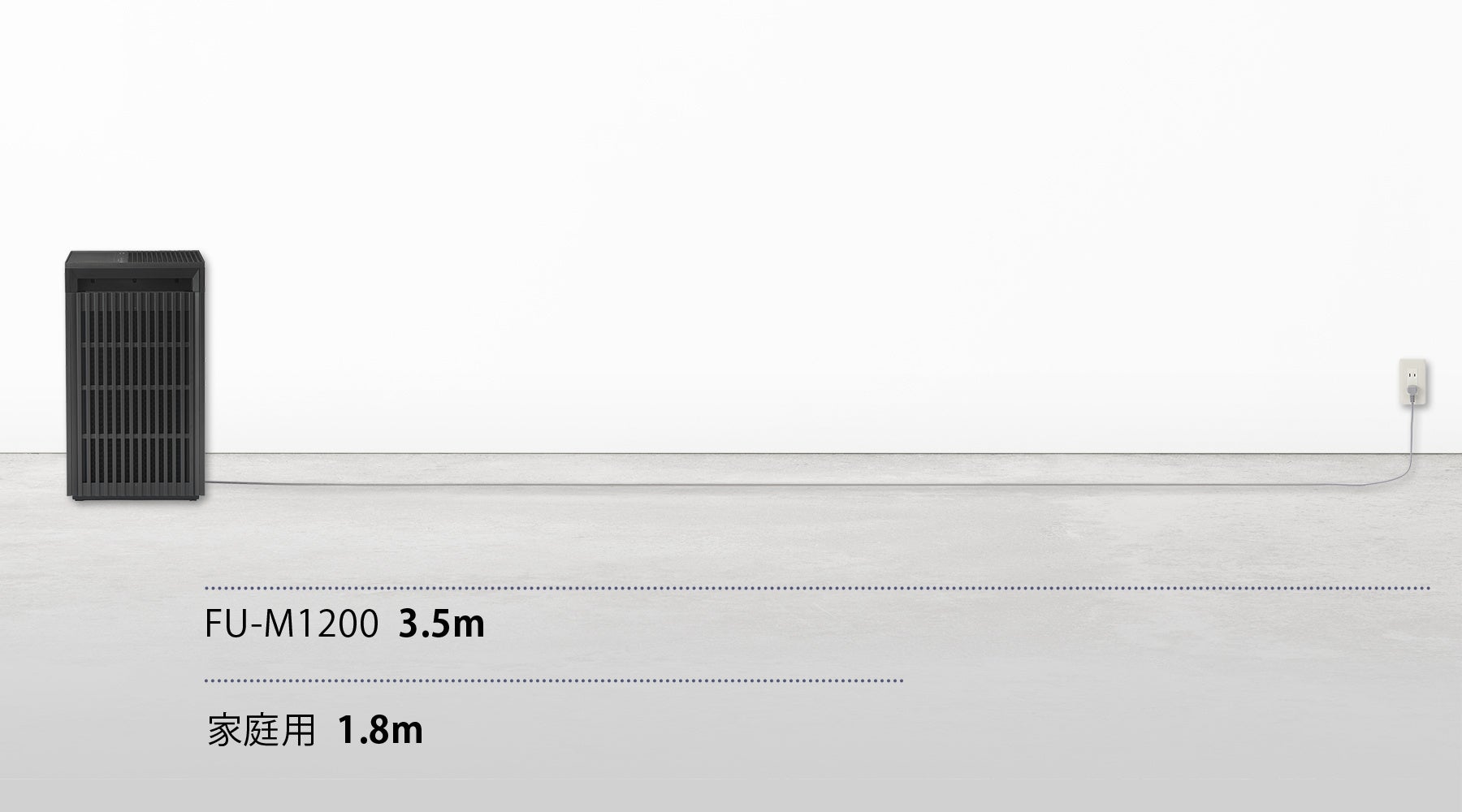 また、壁際に寄せて設置しやすいL字型プラグとコンセントから離れた場所への設置を可能にする3.5mの電源コードを採用。設置性が向上し、さまざまな設置場所にフィットします。