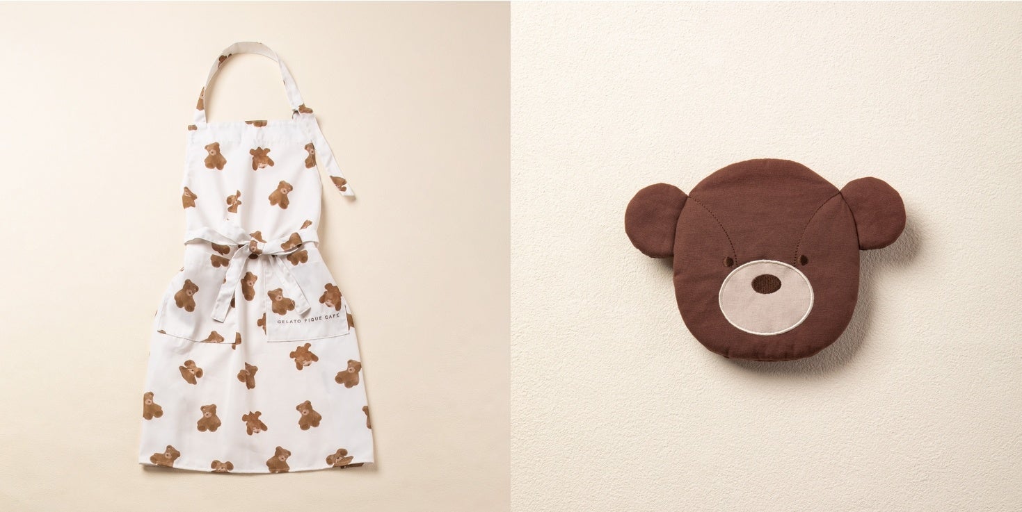 ●写真左:ピケベアモチーフエプロン ¥4,180 長さ82㎝×幅72㎝
