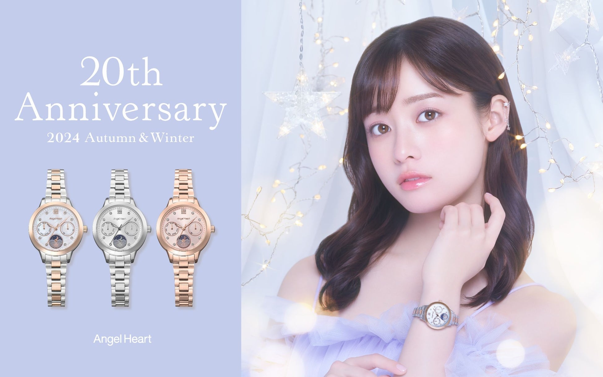 株式会社ウエニ貿易(本社:東京都台東区、代表取締役社長:宮上光喜)の時計ブランド「Angel Heart(エンジェルハート)」は、2024年にブランド設立20周年を迎えました。春夏に引き続き秋冬も20周年記念コレクションとして、2024年9月20日(金)に、サン&ムーンがポイントの新作Innocent Timeシリーズ3型を全国の時計店とオンラインショップで発売します。新作を身に着けた橋本環奈さんの新ビジュアルも同日に公開いたします。