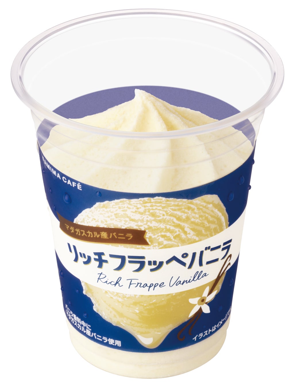 ミルクとバニラの風味と香り、なめらかな食感が特徴的な「リッチフラッペバニラ」をぜひリラックスタイムのお供にお楽しみください。