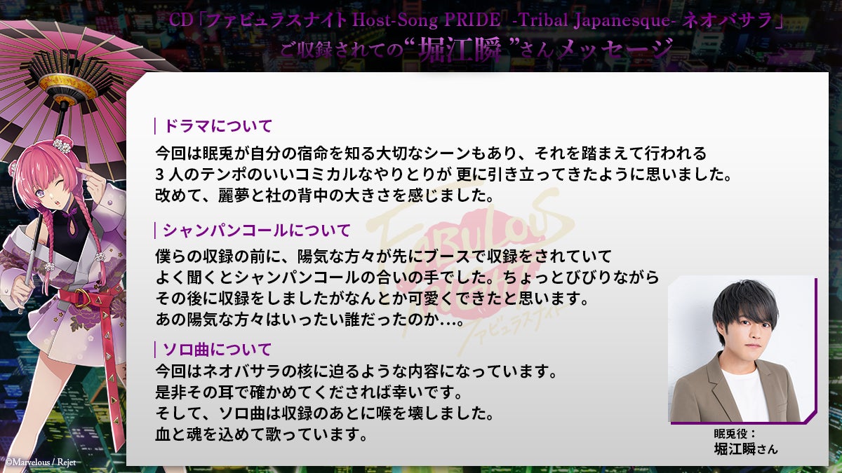 声優直筆サイン色紙プレゼント!CD『ファビュラスナイト』Host-Song PRIDE「ネオバサラ」発売記念キャンペーン実施中!