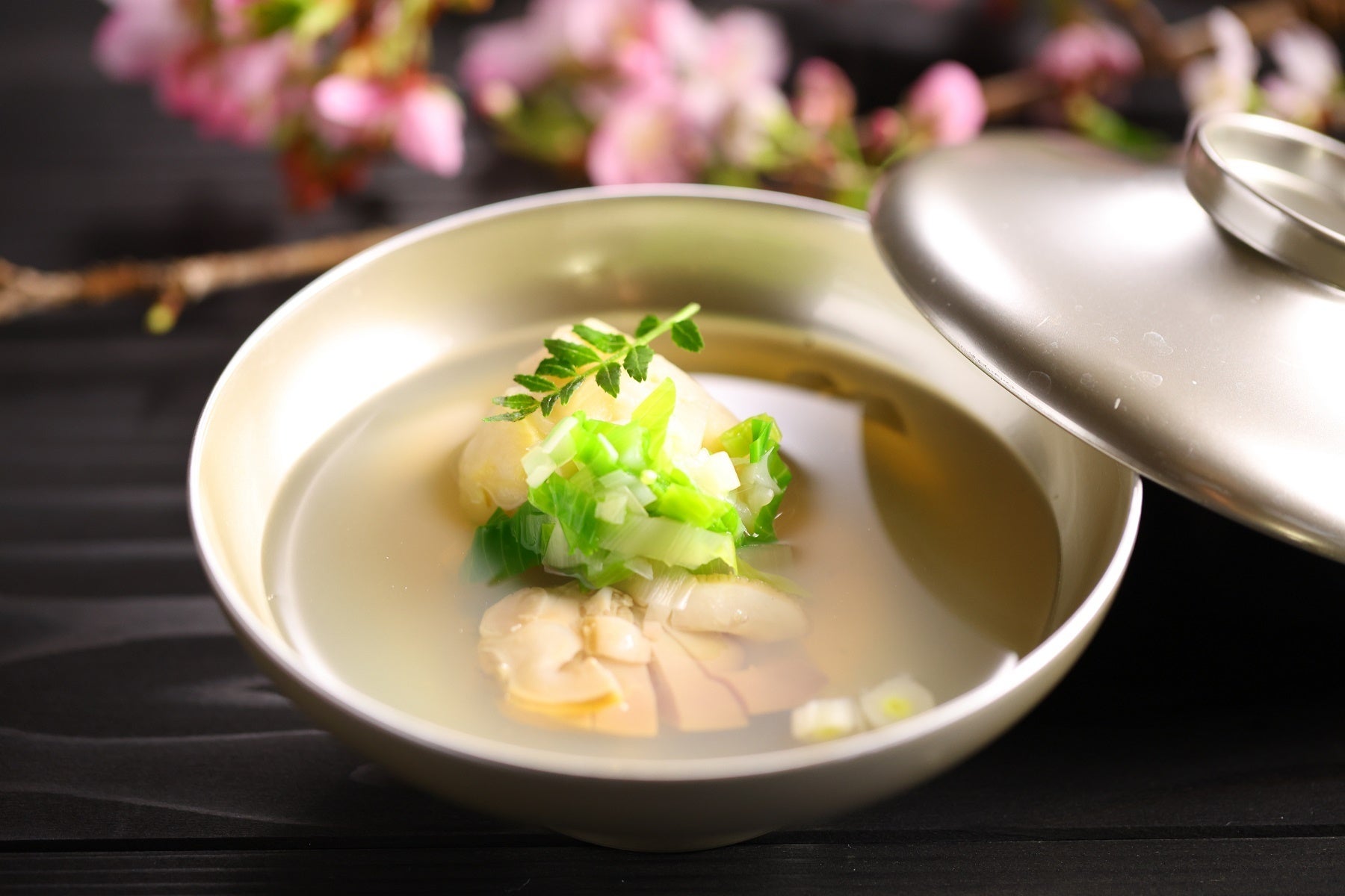 2品目にご紹介するのは、椀物「蛤吸 筍真丈とうるい」でございます。