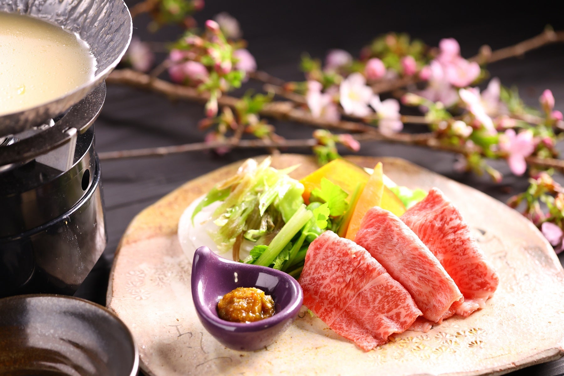 この上質なお肉と、春キャベツやそら豆、せり等春野菜たちを白味噌仕立ての鍋地で煮込むと、白味噌のまろやかさ、米沢牛の上質な甘さ、野菜たちの春の香りの絶妙なハーモニーをご堪能いただけることでしょう。