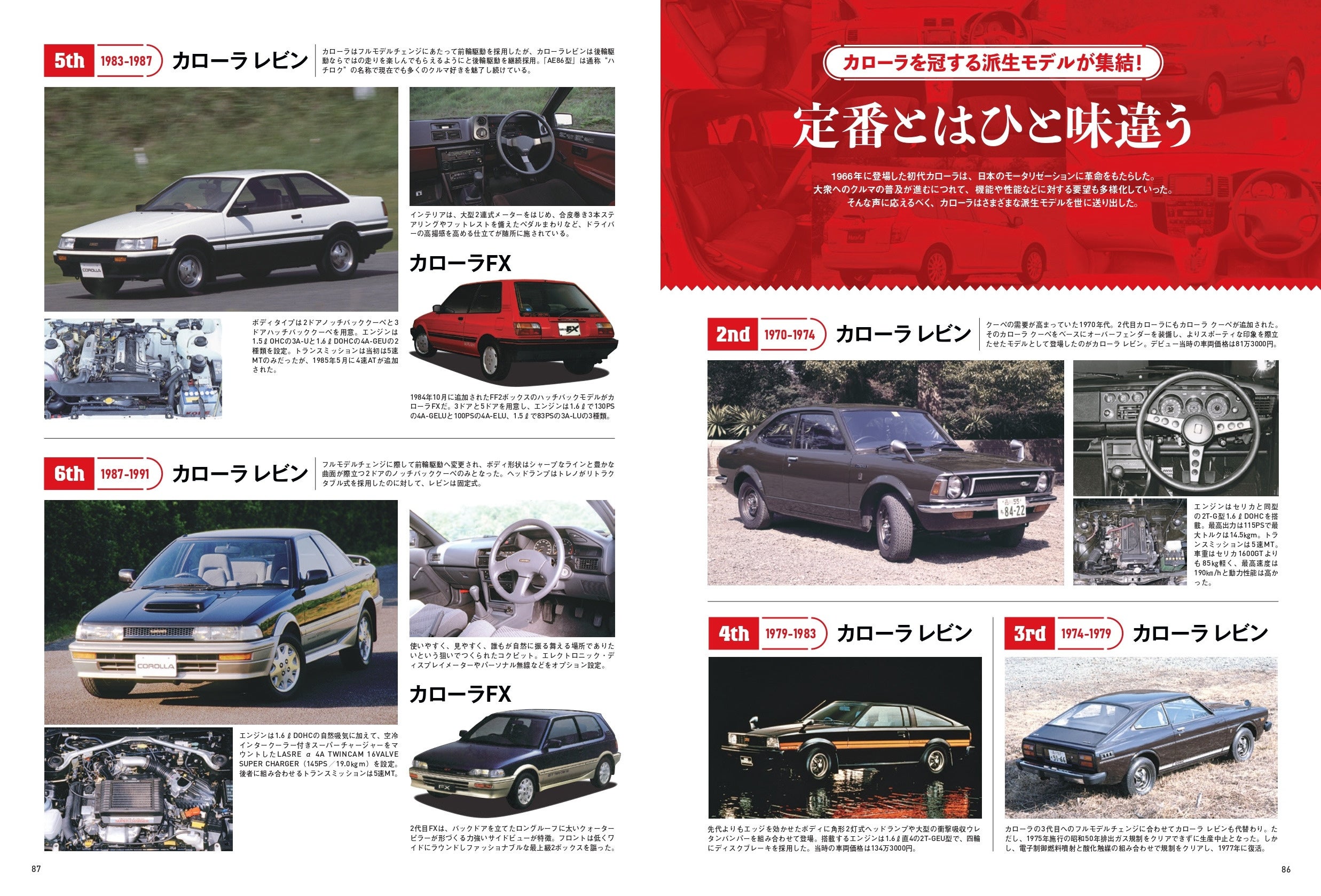 60年のカローラの歴史の中には、さまざまなモデルも登場しました。レビン、FX、スパシオetc……。そうした歴代カローラの派生モデルを紹介していきます。