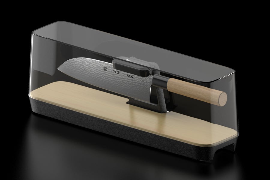 まるで宙に浮いているようなディスプレイの包丁フォルダ。