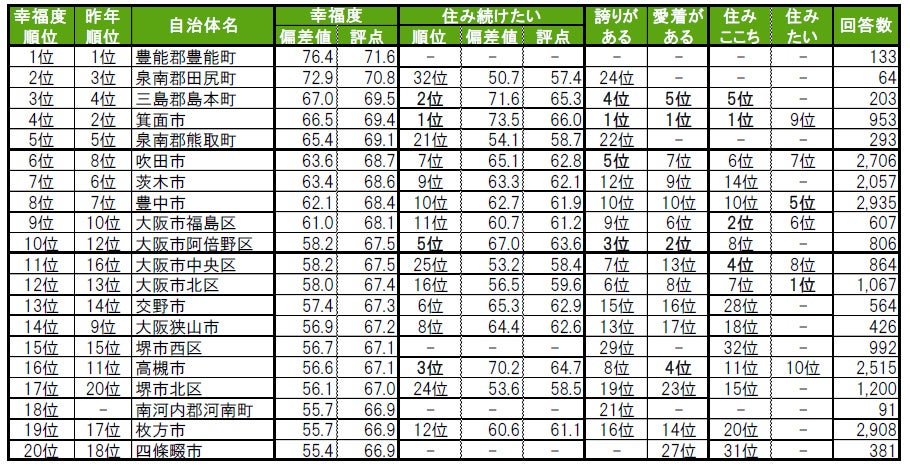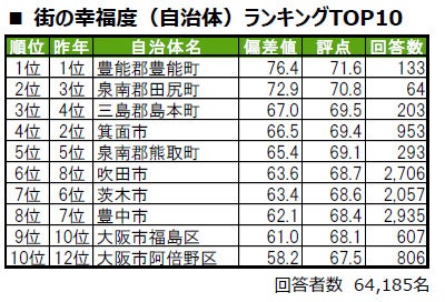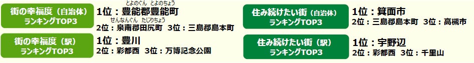 ■街の幸福度(自治体)トップは、5年連続で豊能郡豊能町(とよのぐん とよのちょう)
