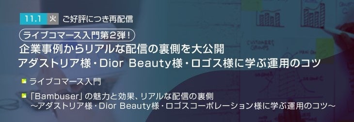 【トランスコスモスオンラインセミナー】ご好評につき再配信 ライブコマース入門 第2弾!企業事例からリアルな配信の裏側を大公開を11/1(火)に開催