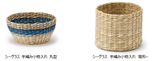 今回は、水草の一種であるシーグラス、生長の早い竹とラタンの3素材を使用した商品を全40アイテム発売します。いずれもベトナム産で、熟練した編み手による独自の編み方で素早く正確にひとつひとつ手で編み上げられたバスケットは、なめらかで素材の風合いを活かした収納用品に仕上げられています。