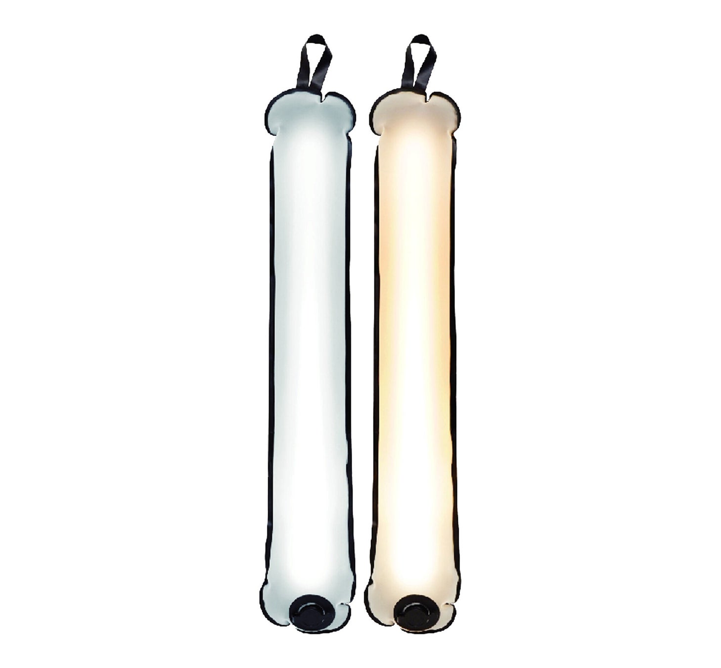 空気を入れ膨らませて使用するLEDライト。明るさは0~100%、色温度は2500K~6500Kの範囲で調節可能。※1