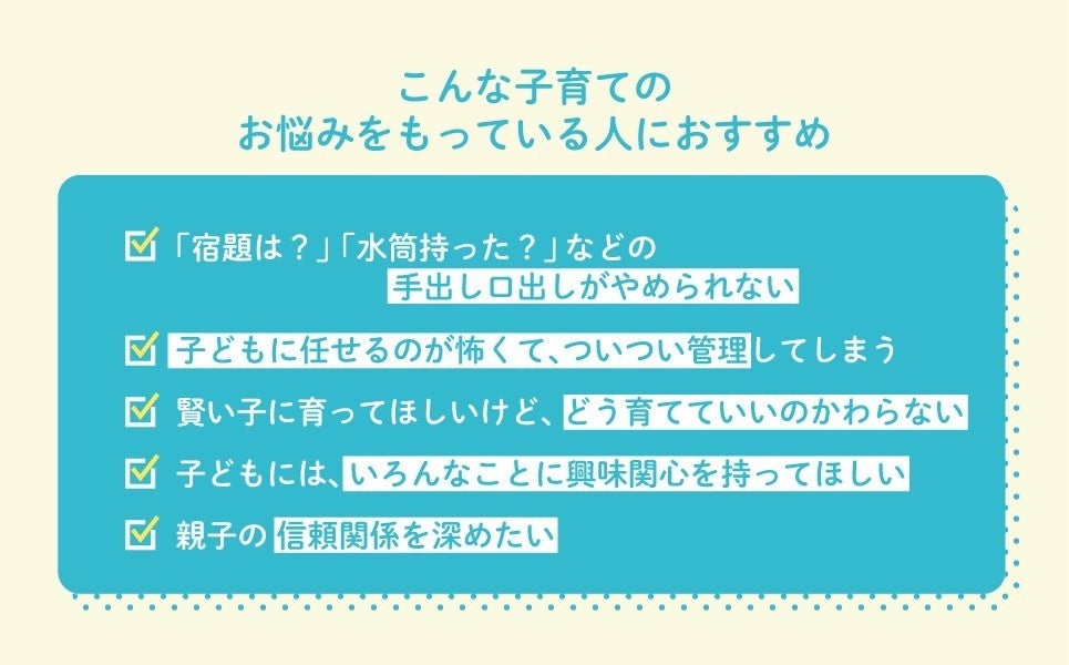 たとえば、「自分で考えて行動できる力を育みたい」と思っているのに、親が先回りしてコントロールしてしまい子どもの考える場面がない――、そんなことはないでしょうか?