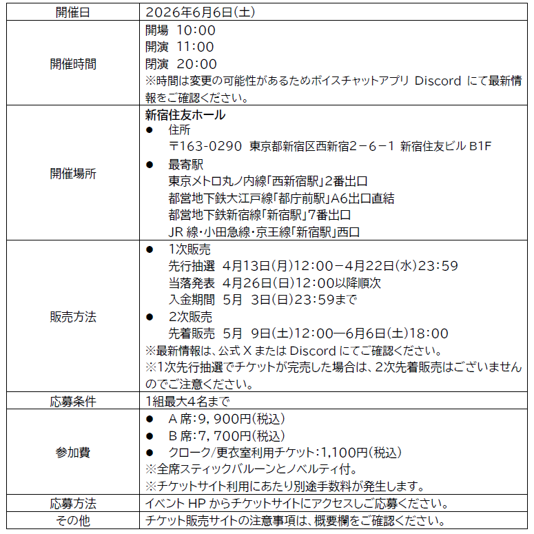 本戦 2026年6月6日(土)11:00-20:00
