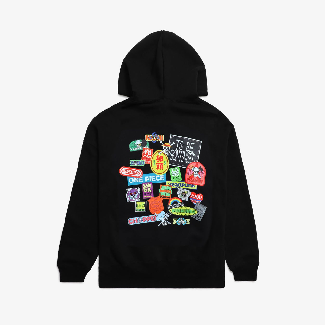 背面にワッペン風のプリントをあしらったルーズシルエットのフーディー。作中に登場する様々なモチーフをランダムに配置し、エッグヘッド編のポップで刺激的な世界観を表現しました。