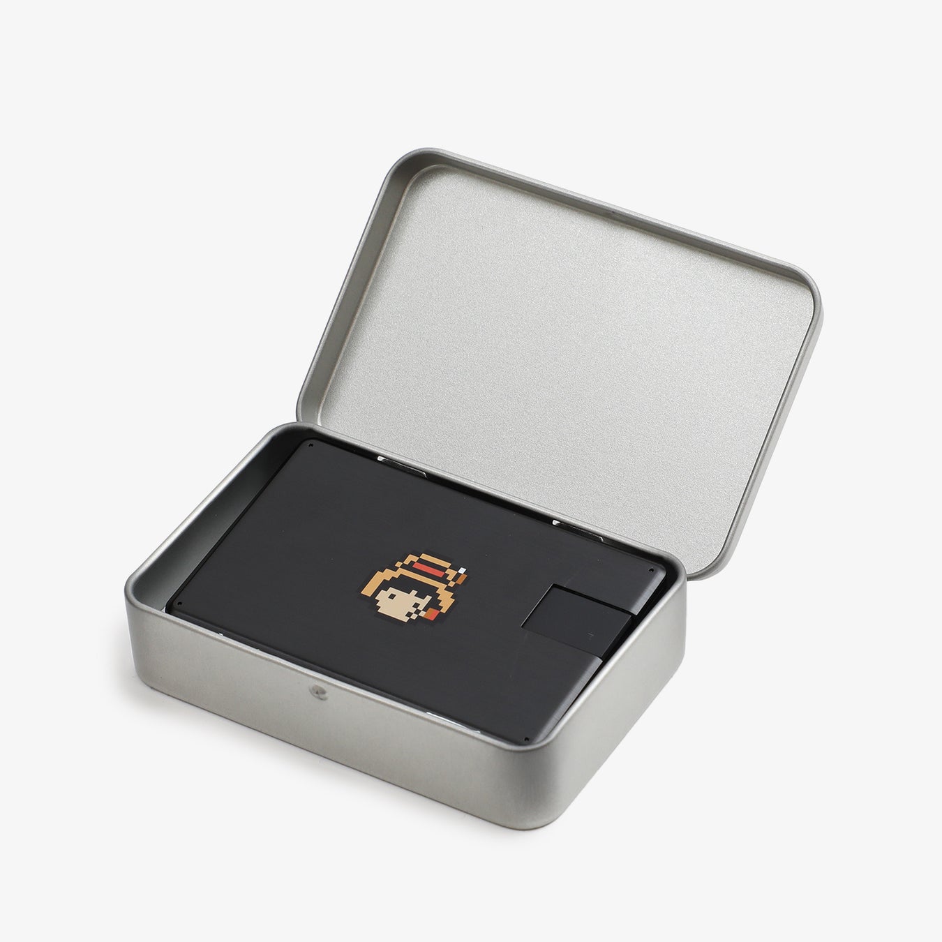 ピクセルアートでルフィをデジタルに表現したUSBカード。USB Type-C/Type-A端子を両方搭載。オリジナルロゴをあしらった専用の缶ケースが付属します。