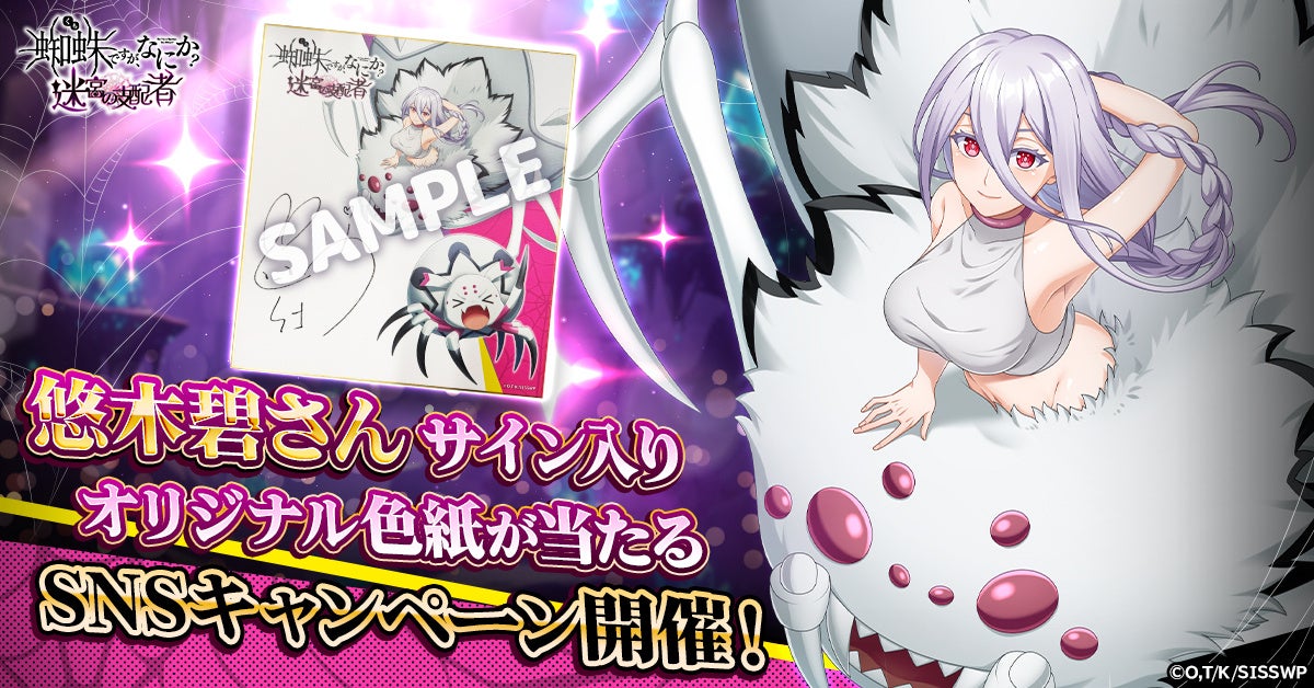 「蜘蛛ですが、なにか? 迷宮の支配者」の戦闘中に「私」(CV:悠木碧)のボイスが聞けるアップデートを実施いたします。録り下ろしのオリジナルボイスとなりますので、ゲームを遊ぶ際は音量をオンにしてお楽しみください。また、Youtubeにてボイス付きの公式PVを公開しました。