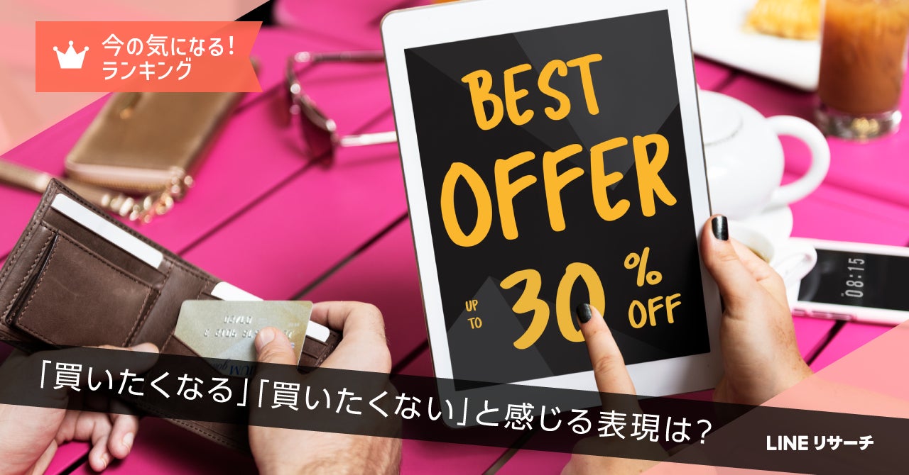 【LINEリサーチ】"買いたくなる"広告表現は「〇〇%オフ / 〇〇円引き」が5割強で1位、一方、「有名人も使っている!」は逆効果?