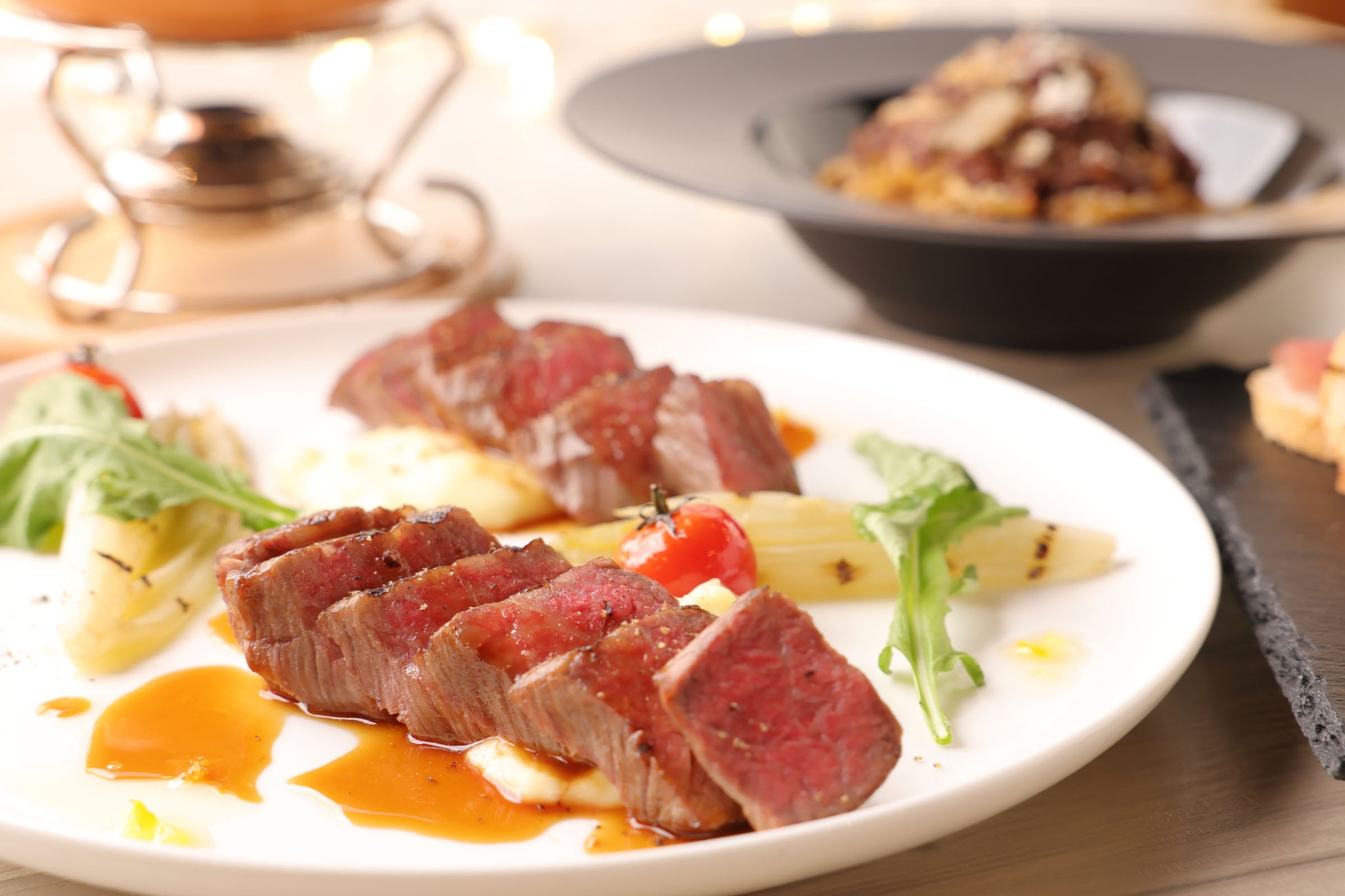 イルミネーション輝く街路樹を眺めながら、カジュアルにお召し上がりいただけるようシェアして楽しめるイタリアンのディナーコースに、乾杯用スパークリングワインとお好みのドリンクをセットにいたしました。前菜には、鴨肉のコンフィと牛たんのパテ クルート、凝縮された旨味のスモークサーモン、ハモンセラーノと味わい深いゴルゴンゾーラチーズのブルスケッタの3種類をご用意。魚料理は、アワビや甘鯛などのアクアパッツァをアツアツのフォンデュ鍋でお召し上がりいただける、身体の芯からあたたまる逸品です。肉料理は、香草を纏った山形県産の牛ランプを豪快に焼き上げました。デザートには、焙煎したコーヒー豆の香りを引き出したティラミスをお客様の前でお取り分けいたします。濃厚なマスカルポーネにコーヒーの苦味が重なり合った「Pizzeria LAVAROCK 仙台」のスペシャリテで、聖夜のディナーコースを締めくくります。