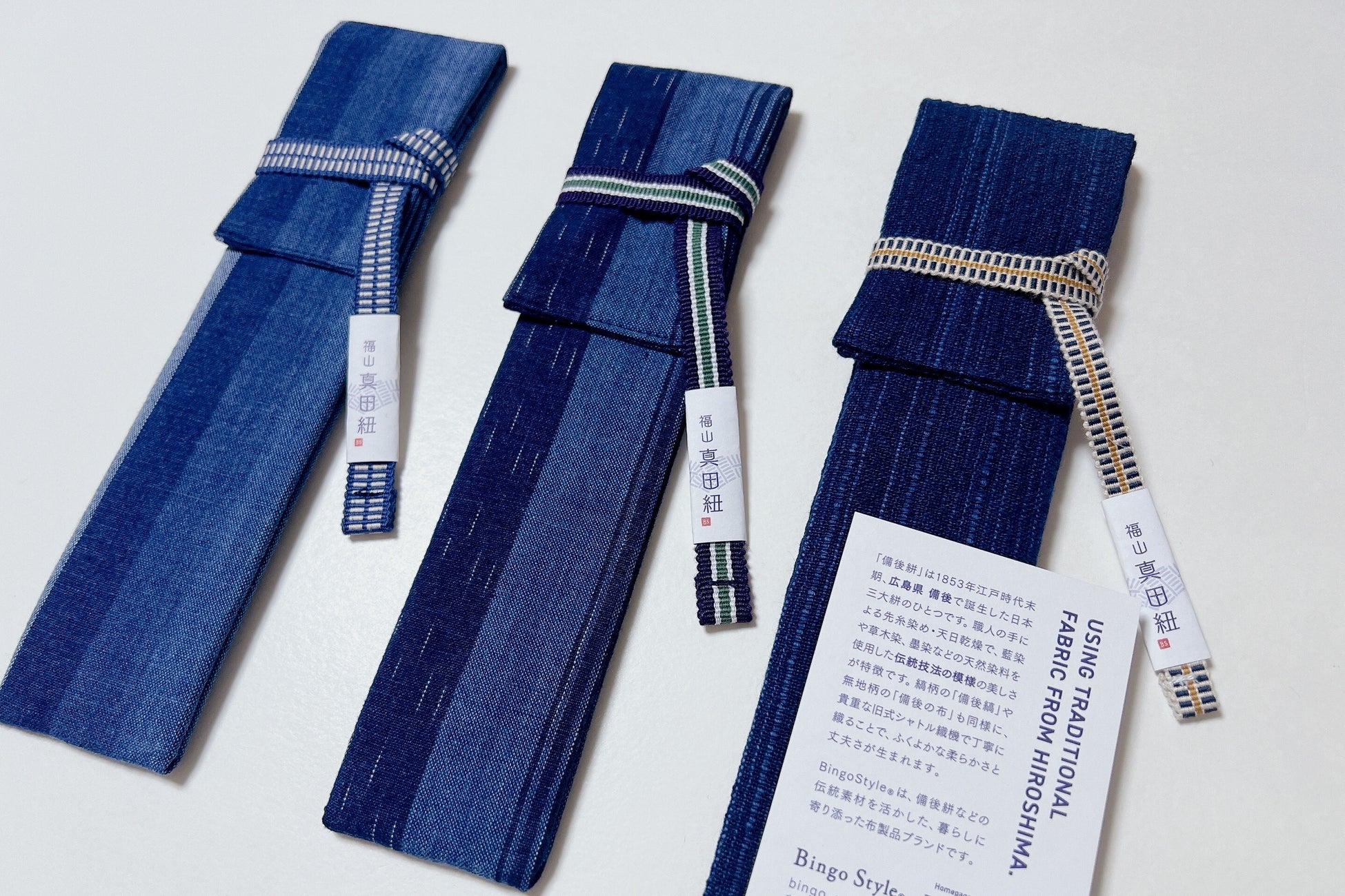 ■備後絣を使ったBingoStyle®ブランドの布製品、山根対厳堂の宮島お砂焼、備後デニムを使ったWAZABI-collectionブランドのファッションアイテム 等