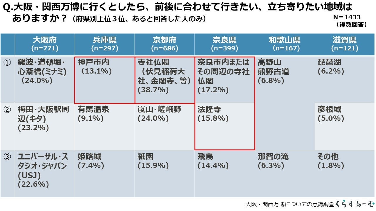 ■「大阪・関西万博」と合わせて行きたい地域:調査結果