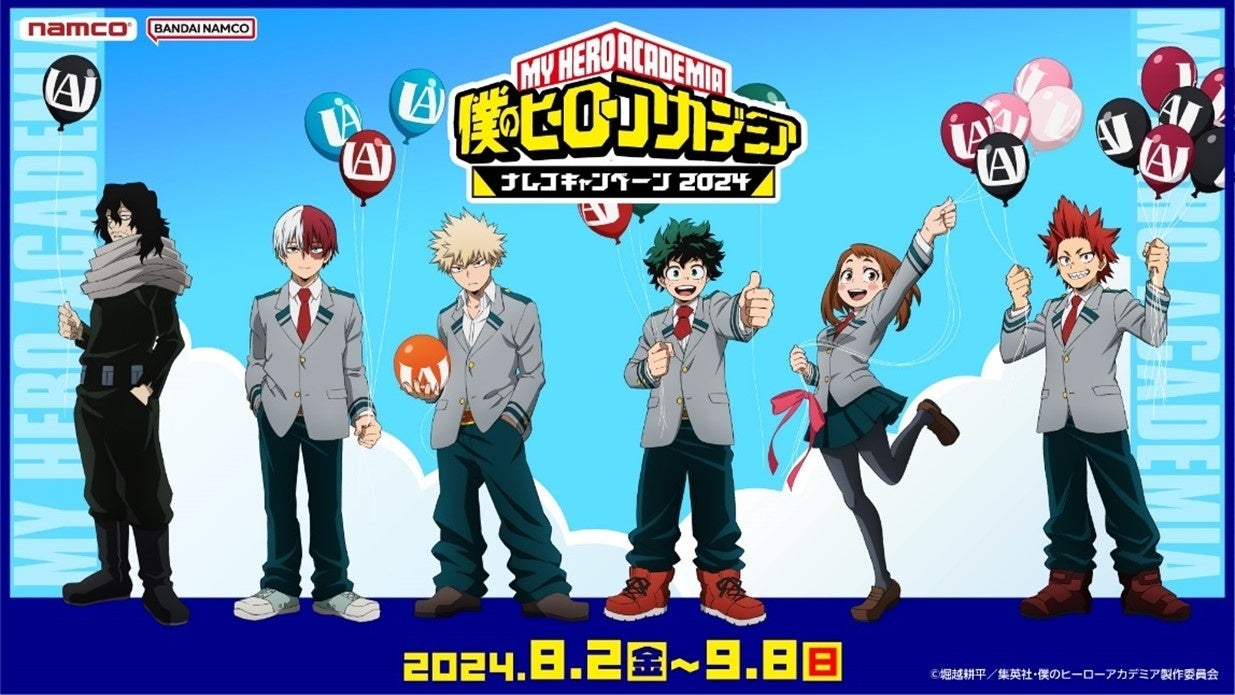 株式会社バンダイナムコアミューズメントは、TVアニメ『僕のヒーローアカデミア』(原作:堀越耕平(集英社「週刊少年ジャンプ」連載中))とのコラボキャンペーン「僕のヒーローアカデミア ナムコキャンペーン2024」を、2024年8月2日(金)から9月8日(日)まで、全国約200店舗の直営アミューズメント施設「ナムコ」と「ナムコオンラインクレーン」(以下ナムクレ)で開催します。