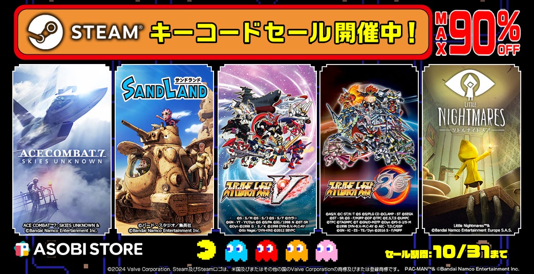 株式会社バンダイナムコエンターテインメントが当社のECサイト『ASOBI STORE』にて最大90%OFF のSTEAMキーコードセールを開催したことをお知らせいたします。