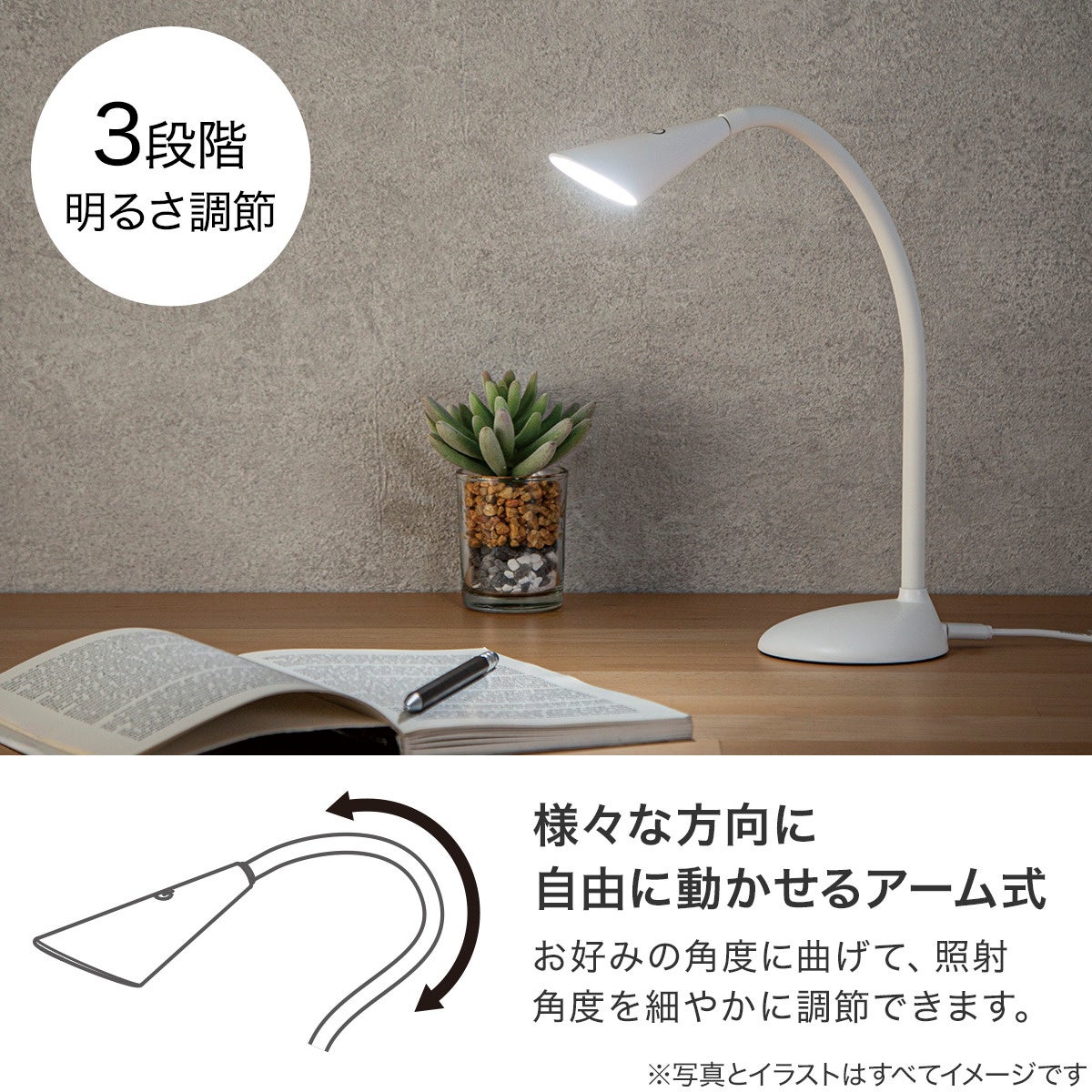 自由に動かせるアーム式で照らしたい場所をピンポイントで明るく。