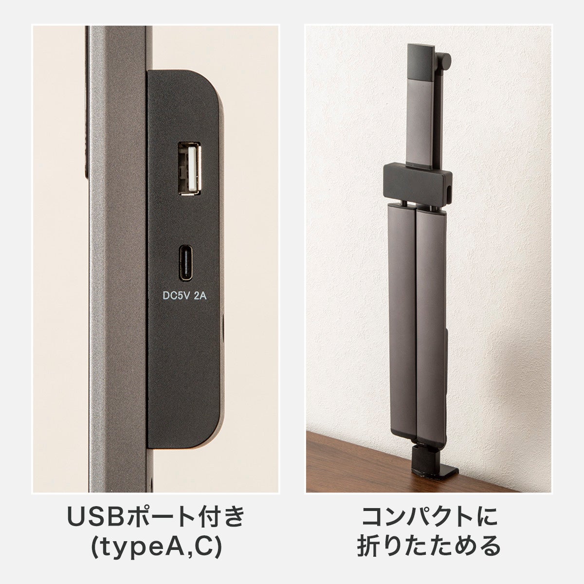 さらに、USBポート(Type-A/Type-C)搭載で、学習中のスマートフォンやタブレットの充電もスマートにできます。