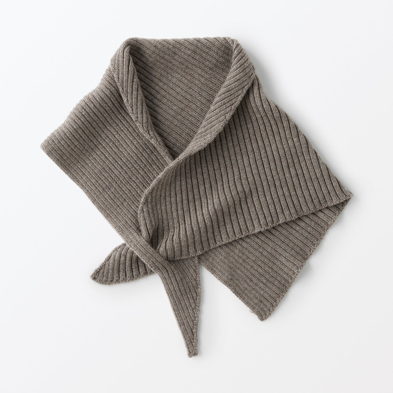 三角形のコンパクトなサイズ感で、つけ襟のように使えます。防寒用にアウターの首元として、スカーフ代わりにアクセントとしても使いやすいバランスです。