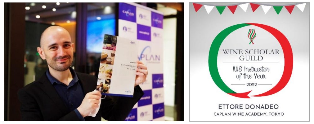 この度、「キャプラン ワインアカデミー」のワイン講師Ettore Donadeo(エットレ ドナデオ)は、「2022 WSG Program Provider Award」において、最高位の実績や功績を上げたインストラクターに与えられる『Italian Wine Scholar™(IWS) instructor of the Year 2022』を日本で初めて受賞しました。