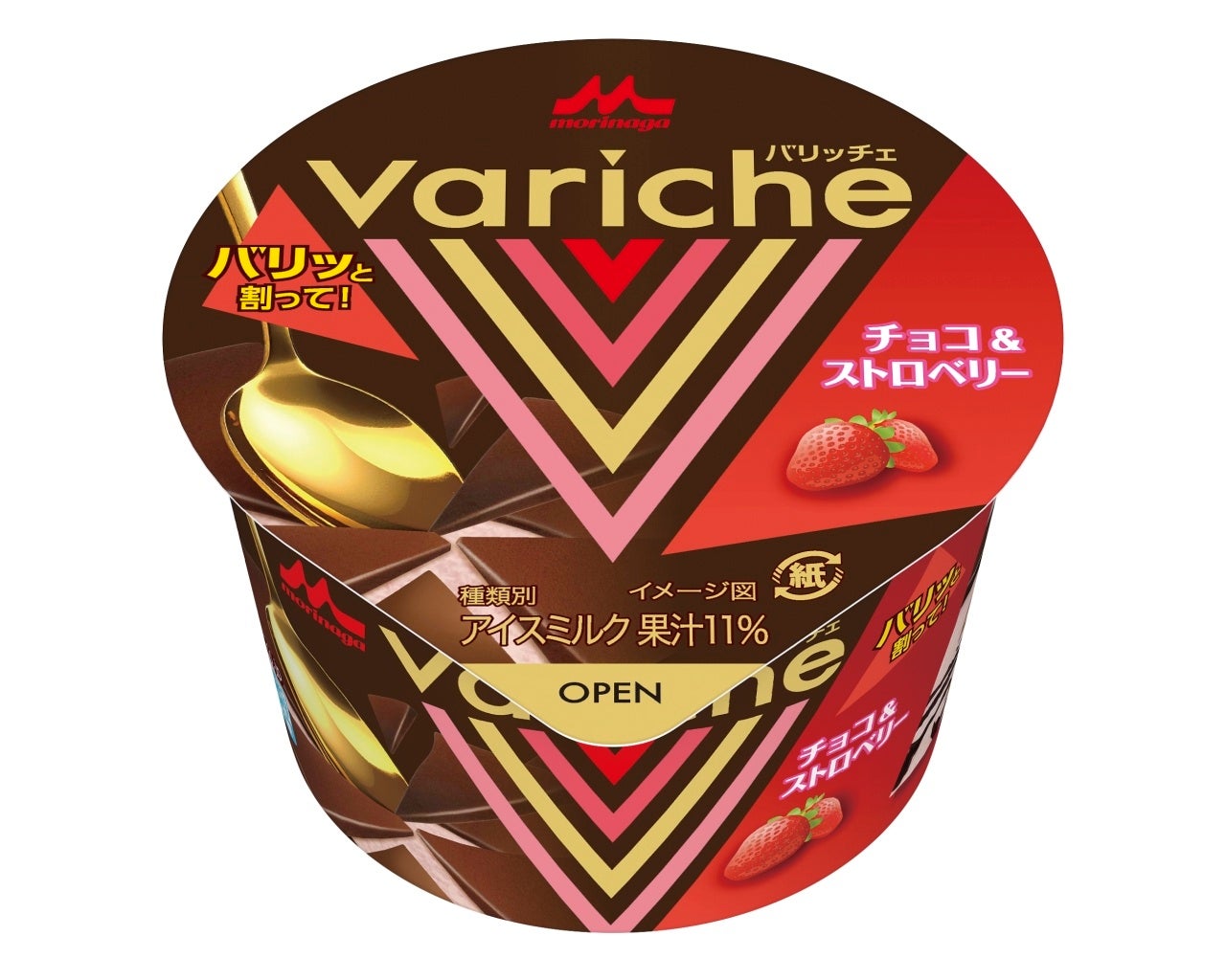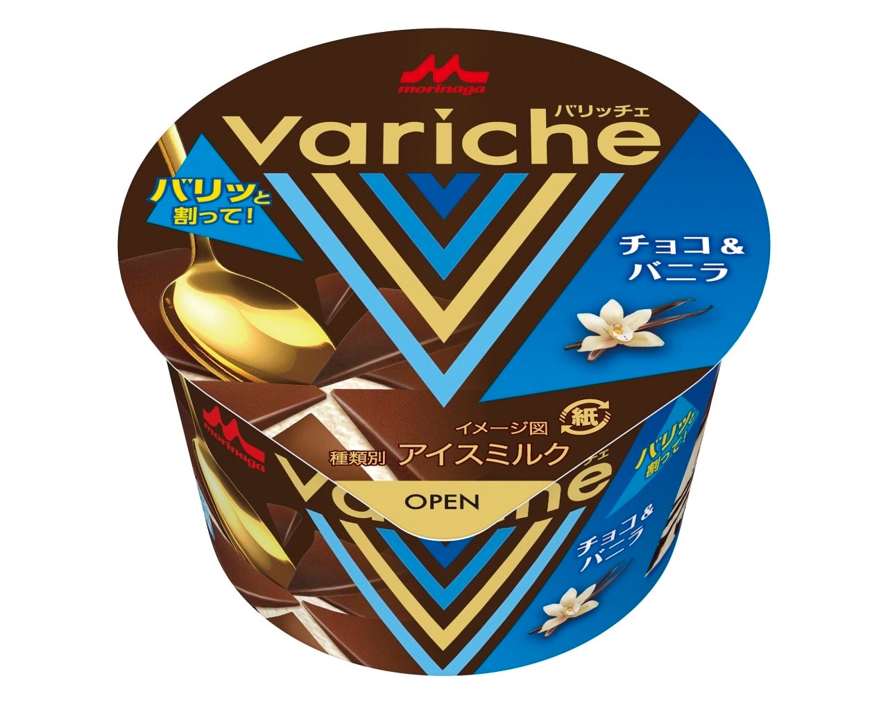 「Variche(バリッチェ)」シリーズは、分厚いチョコをスプーンでバリッと割ってから食べる新体験カップアイスです。