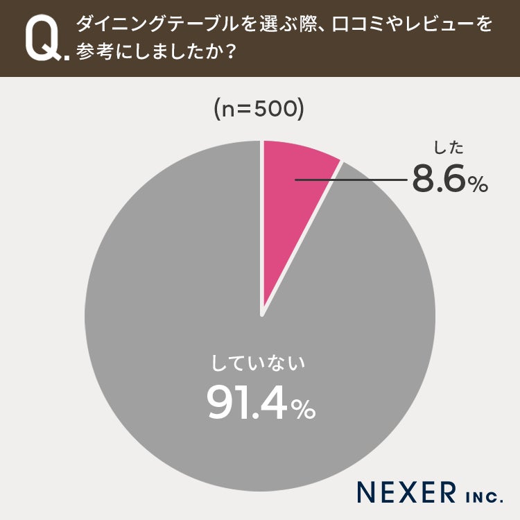 ■8.6%がダイニングテーブルを選ぶ際「口コミやレビューを参考にした」