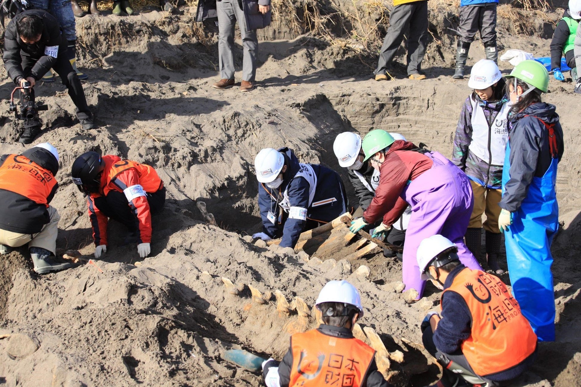 中学生の研究生たちはグループリーダーの指示に的確に従い、テキパキ作業をこなしていました。さらに保護者や支援者の皆様にも骨のクリーニングや運搬などを手伝ってもらえたおかげで、結果的には想定よりも早くすべての骨を掘り出すことができました。今回掘り出された骨格はこれから100年以上保管され、研究者だけでなく、多くの人の目に触れることとなるでしょう。全国的にも珍しいコククジラの骨を掘り出す体験を多くの方と共有できたことを心から嬉しく思っております。