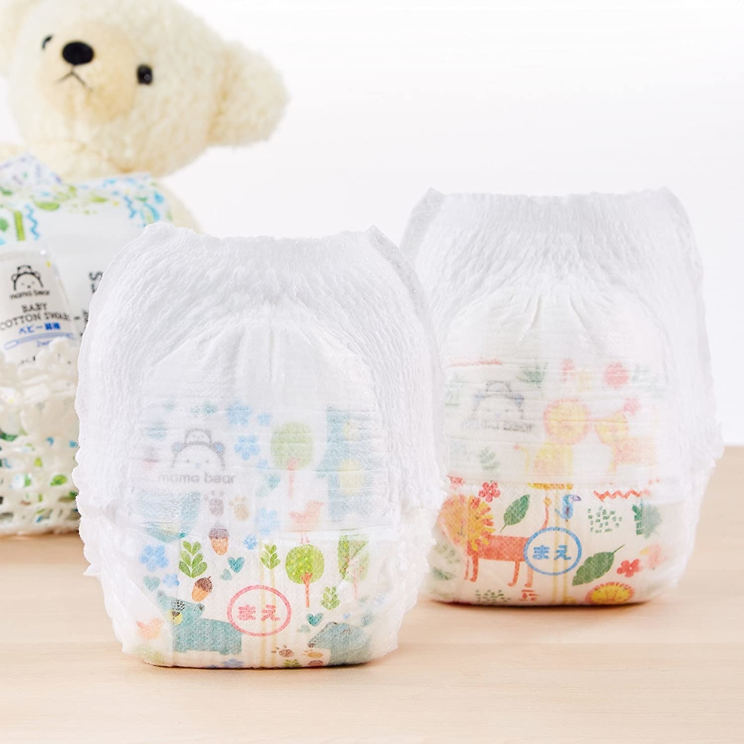 おなか周り・足周りまでふわふわでやわらかく、赤ちゃんのお肌を快適に包み込みます。ウエストがしっかり伸びるので履かせやすく、動き回る赤ちゃんのお尻にもフィット。汗や湿気を逃がすギャザー構造でムレにくく、おしっこを素早く吸ってお尻をさらさらに保ちます。色で交換のタイミングを知らせるサイン付き。動物や自然をモチーフにしたかわいいデザインです。