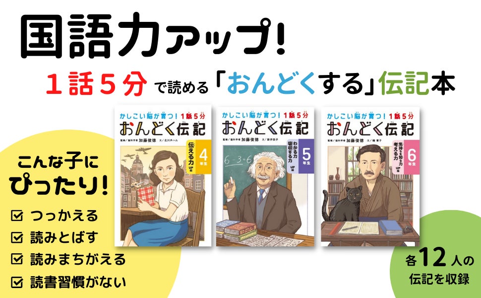 ベストセラー脳科学者考案のオリジナルおんどく法で、国語力が高まる!シリーズ初の小学校高学年向け『1話5分 おんどく伝記』4~6年生 発売