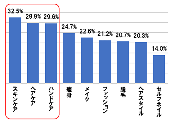 ■コロナ禍で関心が高まったのは、1位「スキンケア」、2位「ヘアケア」、3位「ハンドケア」